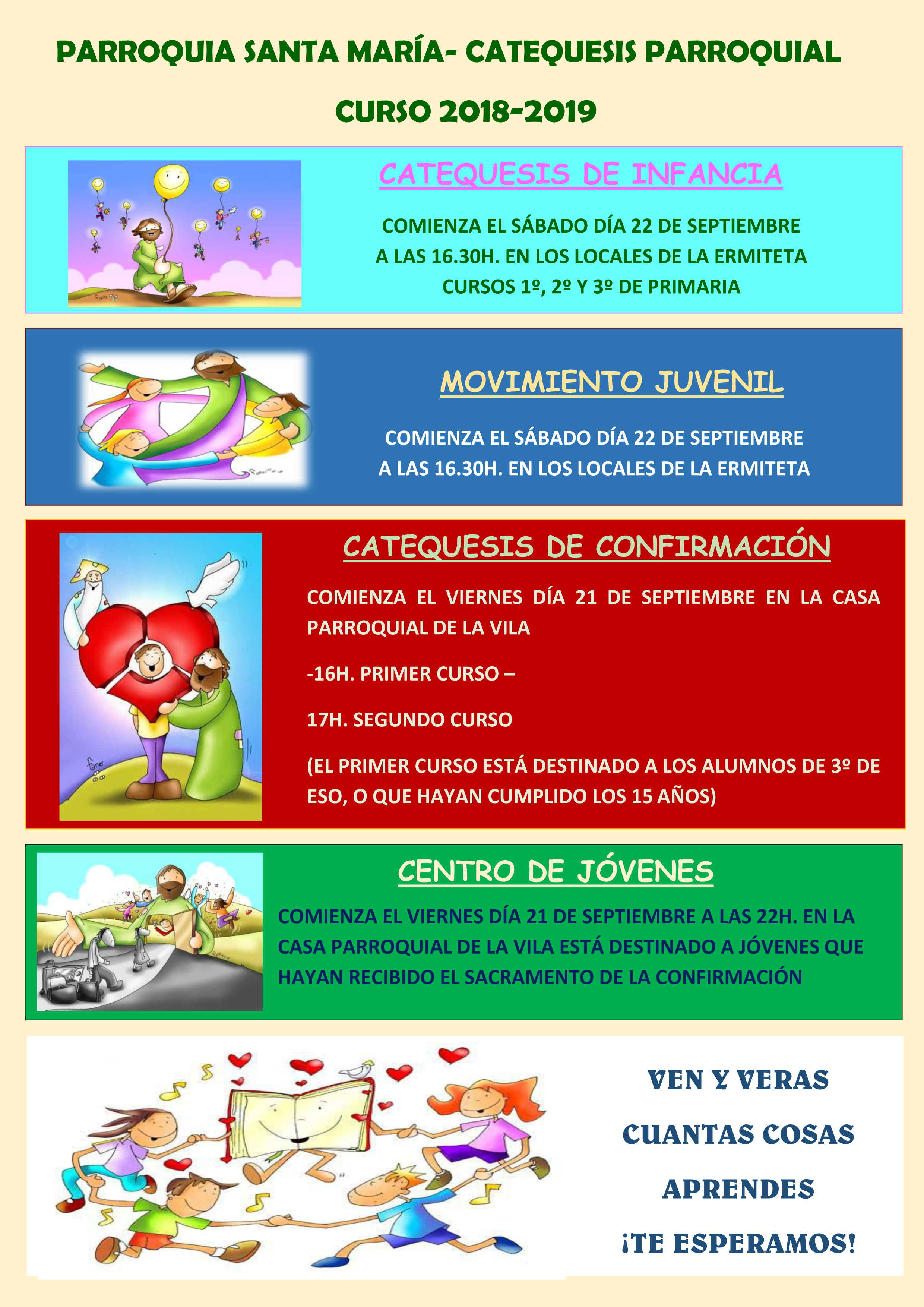 Entre el viernes 21 y el sábado 22 dará inicio las actividades de la Catequesis Parroquial para este nuevo curso 2018-2019.