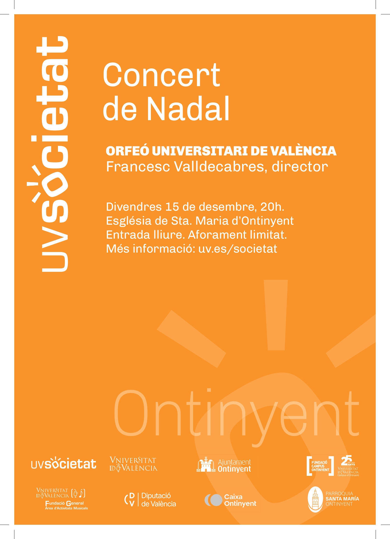 El proper divendres dia 15 de desembre a les 20 hores en l’Església de Santa Maria tindrà lloc el Concert de Nadal a càrrec de l’Orfeó Universitari de Valéncia.