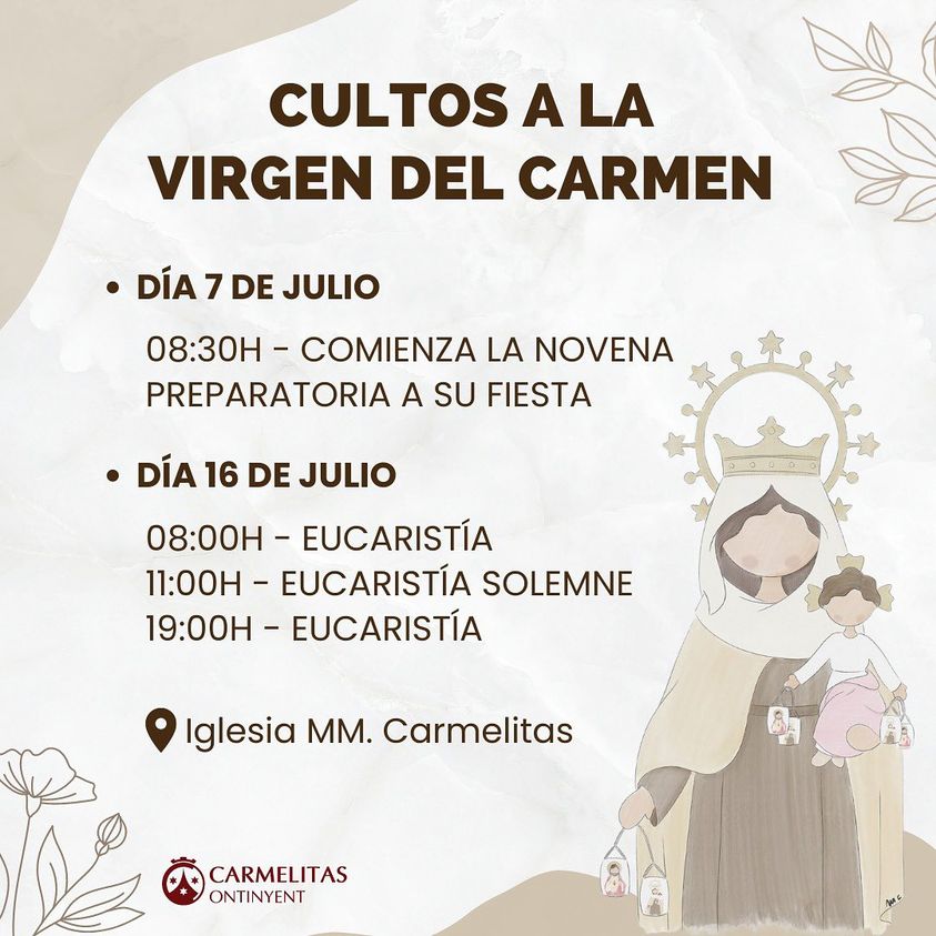 El próximo día 16 de julio celebraremos con las Carmelitas de Ontinyent la fiesta de la Santísima Virgen del Monte Carmelo (Virgen del Carmen).